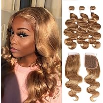 Amazon Com X Tress Honey Blonde Bundles With Closure 100 Human Hair Color 27 Hair Bundles 3 Bundles With Closure Body Wave Human Hair Double Weft With Lace Closure 4 4 Free Part 12