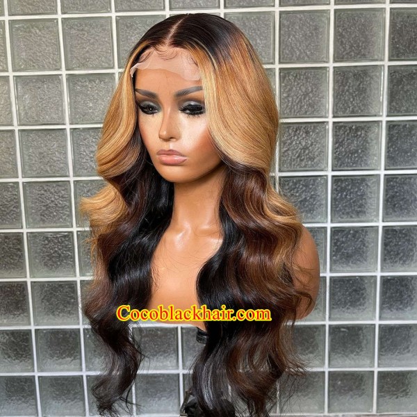 Ombre 1b 27 Honey Blonde Color Body Wave Free Part Lace Wigs